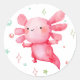 Watercolor Pink Axolotl Birthday Party Classic Round Sticker