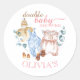 Watercolor Pink Blue Twins Baby Shower Classic Round Sticker