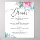 Watercolor pink blush floral script wedding drinks poster