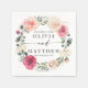Elegant watercolor floral Napkins with pink blush roses for summer garden botanical wedding. Suitable for engagement party, rehearsal dinner.