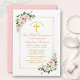 Watercolor Pink Blush White Floral Gold Communion Invitation