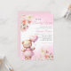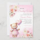 Watercolor Pink Boho Teddy Bear Girl Baby Shower Invitation
