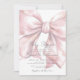 This Chic Oversized Bow Baby Shower Invitation features a bold blush pink bow that takes centre stage, covering nearly the entire design. The bow makes a refined statement, complemented by the simple "Baby Shower" at the top, displayed in a mix of soft grey handwritten script and classic serif fonts. The blush pink background, with subtle off-white accents, adds a modern, elegant touch—perfect for a baby girl shower or for a mum-to-be who adores pink.