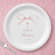 Watercolor Pink Bow Baptism Paper Plate
