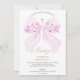 Watercolor Pink Bow Floral Girl Baptism Invitation