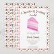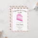 Indulge in the sweetness of this hand-painted watercolor Pink Cake and Desserts baby shower invitation. Featuring a delectable pink frosted cake against a backdrop adorned with Chocolate Cake, Cupcakes, Strawberries With Chocolate, and Fruit Tart patterns, each dessert was meticulously painted by the talented artist Daphsam.