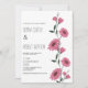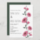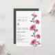 Watercolor pink dark green daisies floral wedding invitation