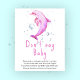 A little one on the way with this under the sea themed baby shower invitation, featuring baby dolphin in soft blue watercolors. Watercolor water bubbles.