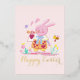 Step into the enchanting world of "Alice in Wonderland: Rabbit in the Garden" illustration. Among a picturesque garden, a charming pink rabbit captures attention as it joyfully blows a trumpet adorned with a heart flag, symbolising celebration and whimsy. The garden background is alive with warm blooms, a buzzing bee, and graceful butterflies dancing with smiling hearts. This whimsical scene invites you to embark on a magical journey through Wonderland, where imagination and wonder abound.