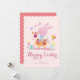 watercolor pink easter bunny in garden holiday card
