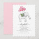 Birthday party invitation with watercolor elephant and pink hearts for girl. Please contact me if you need additional items.
