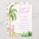 Watercolor Pink Flamingo Beach Christmas Photo Invitation