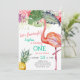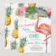 Watercolor Pink Flamingo Girl First Birthday Invitation
