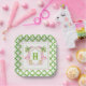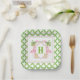Watercolor Pink Flamingo Monogram Crest Christmas Paper Plate