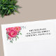 This pretty return address label features watercolor roses and flowers in shades of pink and purple with eucalyptus and other foliage,