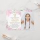 Watercolor Pink Floral First Holy Communion Photo Invitation