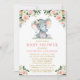 Watercolor Pink Floral Gold Baby Shower Elephant Invitation