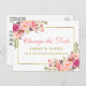 Watercolor Pink Floral Gold Change The Date Postcard