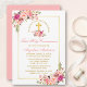Watercolor Pink Floral Gold Frame First Communion Invitation