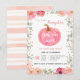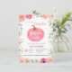 Watercolor Pink Floral Gold Pumpkin 1st Birthday Invitation