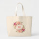 Watercolor Pink Floral Wreath Monogram Large Tote Bag