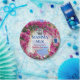 Watercolor Pink Flowers Blue Tiles Disco Ball Paper Plate