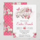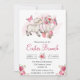 Watercolor Pink Flowers & Cute Lamb Easter Brunch Invitation