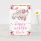 Watercolor Pink Flowers Lamb Happy Easter Card