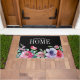 Watercolor Pink Flowers Modern Family Name Black Doormat