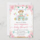 Watercolor Pink Flowers Monkey Baby Shower Invitation