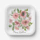 Watercolor Pink flowers on White Paper Plate