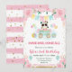 Watercolor Pink Flowers Panda Kids Birthday Invitation