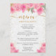 Watercolor Pink Flowers with Gold Foil design and floral white lace pattern background