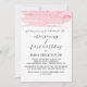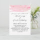 This watercolor pink & gold christening and first birthday invitation card is perfect for an elegant baby girl baptism. The luxurious feminine design features a light pink watercolor texture with a splash of faux gold glitter dust and an elegant calligraphy script font.