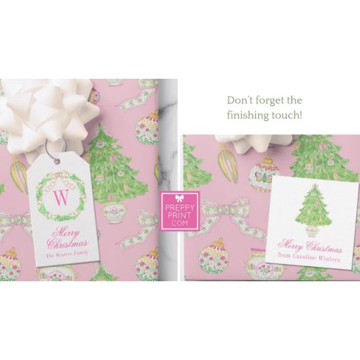 Watercolor Pink & Green Christmas Tree Bow CrestDesigned by Ann