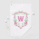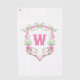 Watercolor Pink & Green Golf Cart Monogram Crest Golf Towel