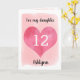 A personalized daughter 12th birthday card that features a watercolor heart against pink watercolor. You can personalize the heart with the age you need and add her name underneath the heart. The inside message can be easily edited if wanted. The back of the card says Happy Birthday, which can also be changed. This would make a pretty and unique birthday card for her.