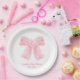 watercolor pink heart bow girl baby shower paper plate