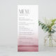 Customisable menu card featuring watercolor pink ombre and modern typography. Personalise by adding date and meal choice. This pink ombre menu card is perfect for weddings, baby showers, bridal showers, birthdays, and more.