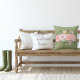 Throw Pillow featuring a watercolor illustration of peonies and spring flowers in pink tones and greenery set against a muted green background. Perfect for spring. Throw pillows are a great way to add colour to your chairs, sofa and bedding - perfect for almost any room in your home. Additional sizes available.