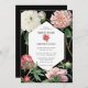 Watercolor Pink Peonies Flowers Wedding Black Invitation