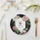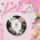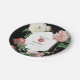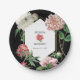 Watercolor Pink Peonies Flowers Wedding Black Paper Plate
