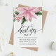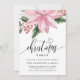 Watercolor Pink Poinsettia Holly Christmas Party Invitation