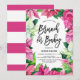 Invite family and friends to your baby shower brunch with this customisable floral invitation. It features watercolor illustrations of pink poinsettias with stripes background. This floral invitation is perfect for holiday and Christmas baby showers. Personalise by adding the date, time, names, venue, address and other event details. You can personalise the back of the invitation further by changing the stripes pattern to any image and adding additional details.