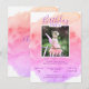 Lovely modern watercolor design birthday party invitation cards for a little two year old girl (change to any age) - 2nd year. Pastel colours in pink, purple, violet, peach, orange, and white colours. Personalise by adding your PHOTO. picture, image. Back of card has option to add name with large birthday number. This custom invite is perfect for any birthday theme and AGE!