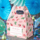 Fresh and modern birthday / baby shower favour boxes with a watercolor strawberry repeat pattern. These strawberries / leaves / blossoms were handpainted by me before being scanned into digital form and turned into a repeating pattern.