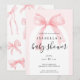 Watercolor Pink Ribbon Bow Baby Shower Invitation