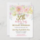 A gorgeous pink watercolor rose birthday party invitation. This fabulous invitation features a soft pink floral rose design on a gold confetti background. Easy to personalise with your own 80th (or any age) birthday party celebration details.