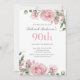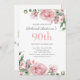 Watercolor PInk Rose 90th Birthday Party Invitation