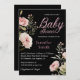elegant budget watercolor pink roses girl baby shower black background invitation